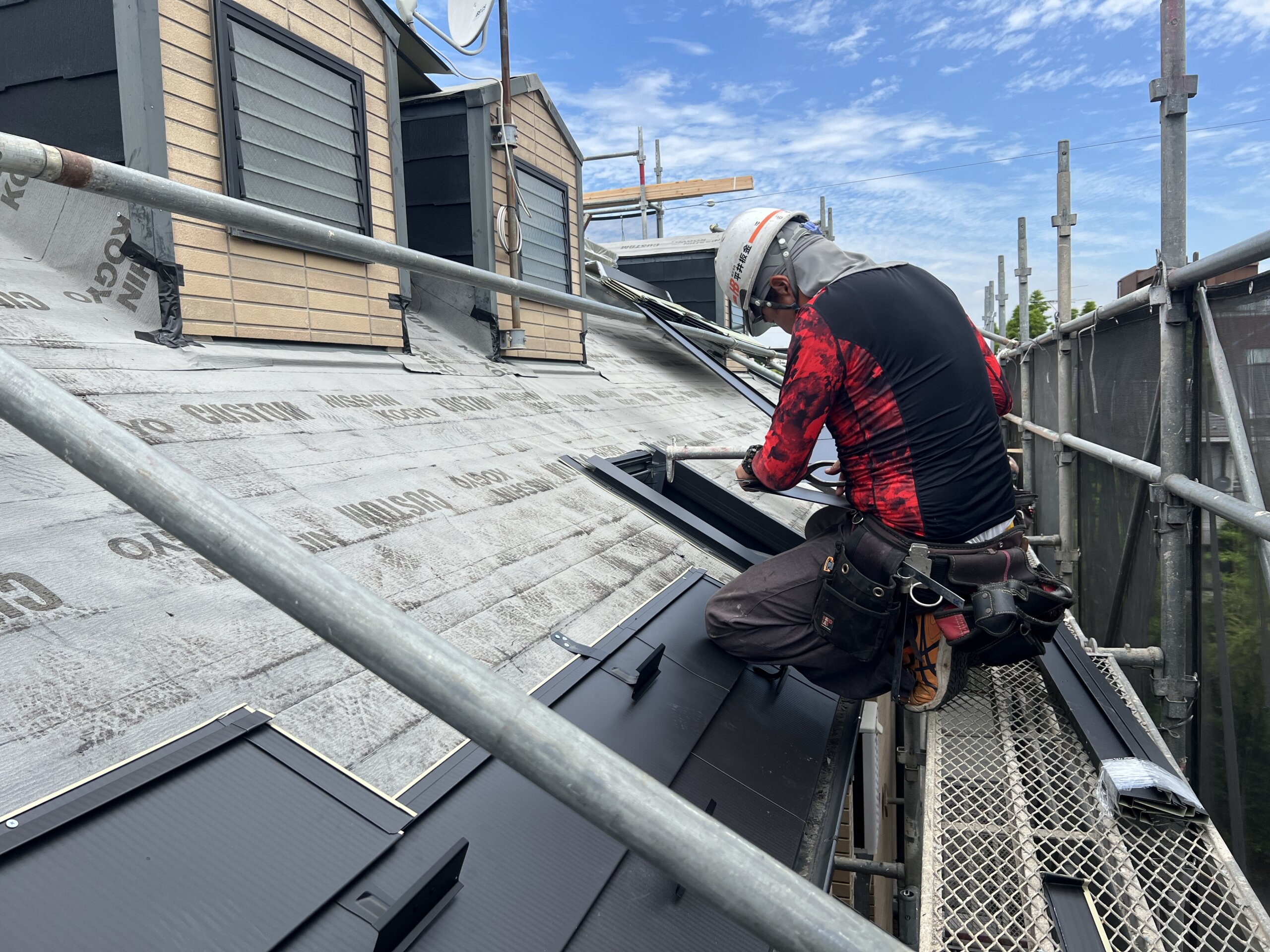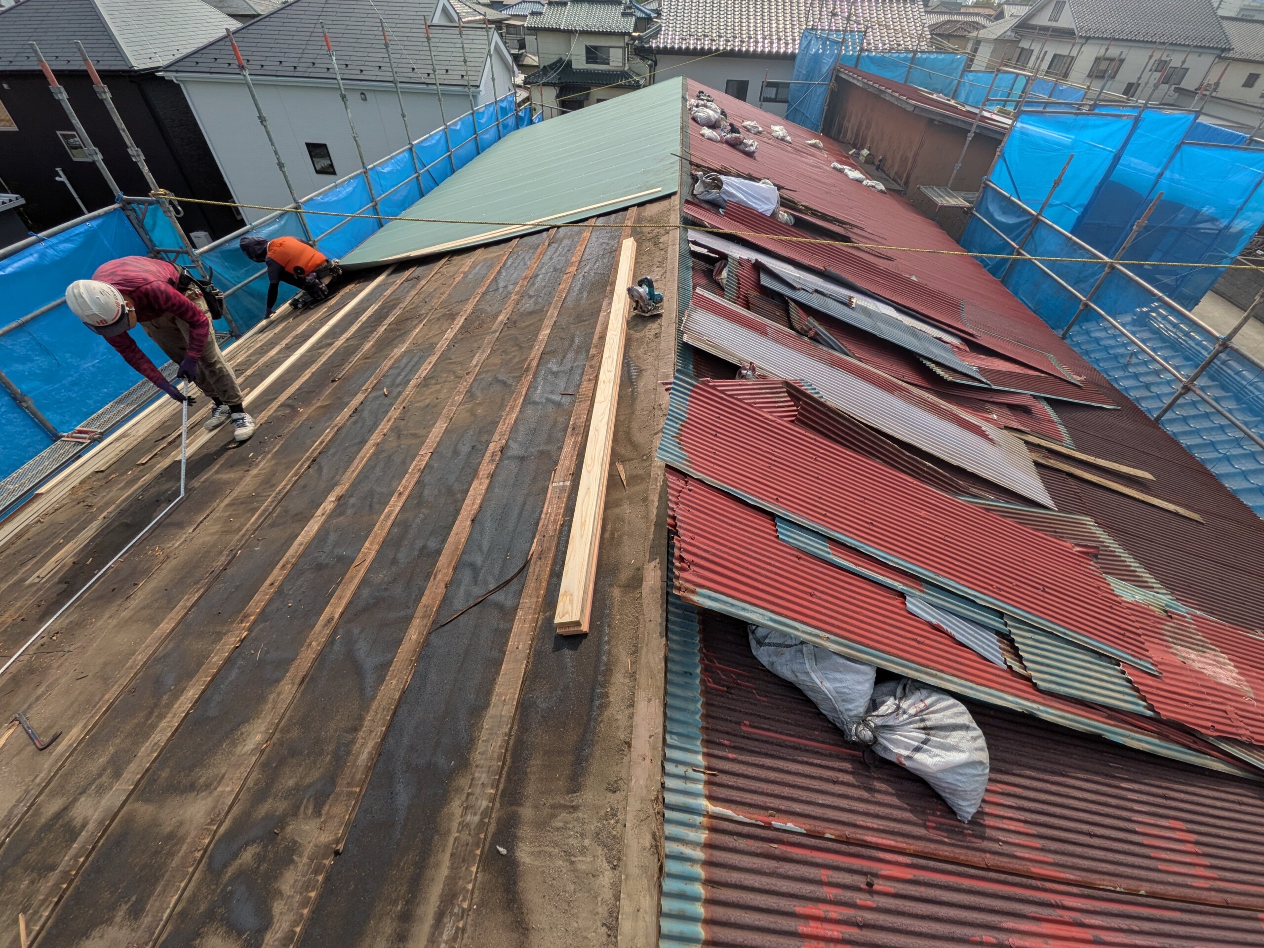 耐震リフォームでは「ルーフィング(防水シート)」や「ビス固定方法」まで見直します。特にステンレス製ビスや、引抜き強度に優れた“ハゼ締め”構造を採用すると、風圧にも強い屋根になります。